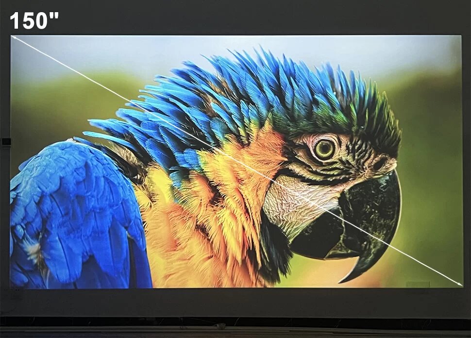 | Плюсы: | Можно смотреть не в полной темноте, благодаря настройкам яркости. Картинка сочная, передача не сбоит, можно вывести не только на полотно/стену, но и на потолок. |