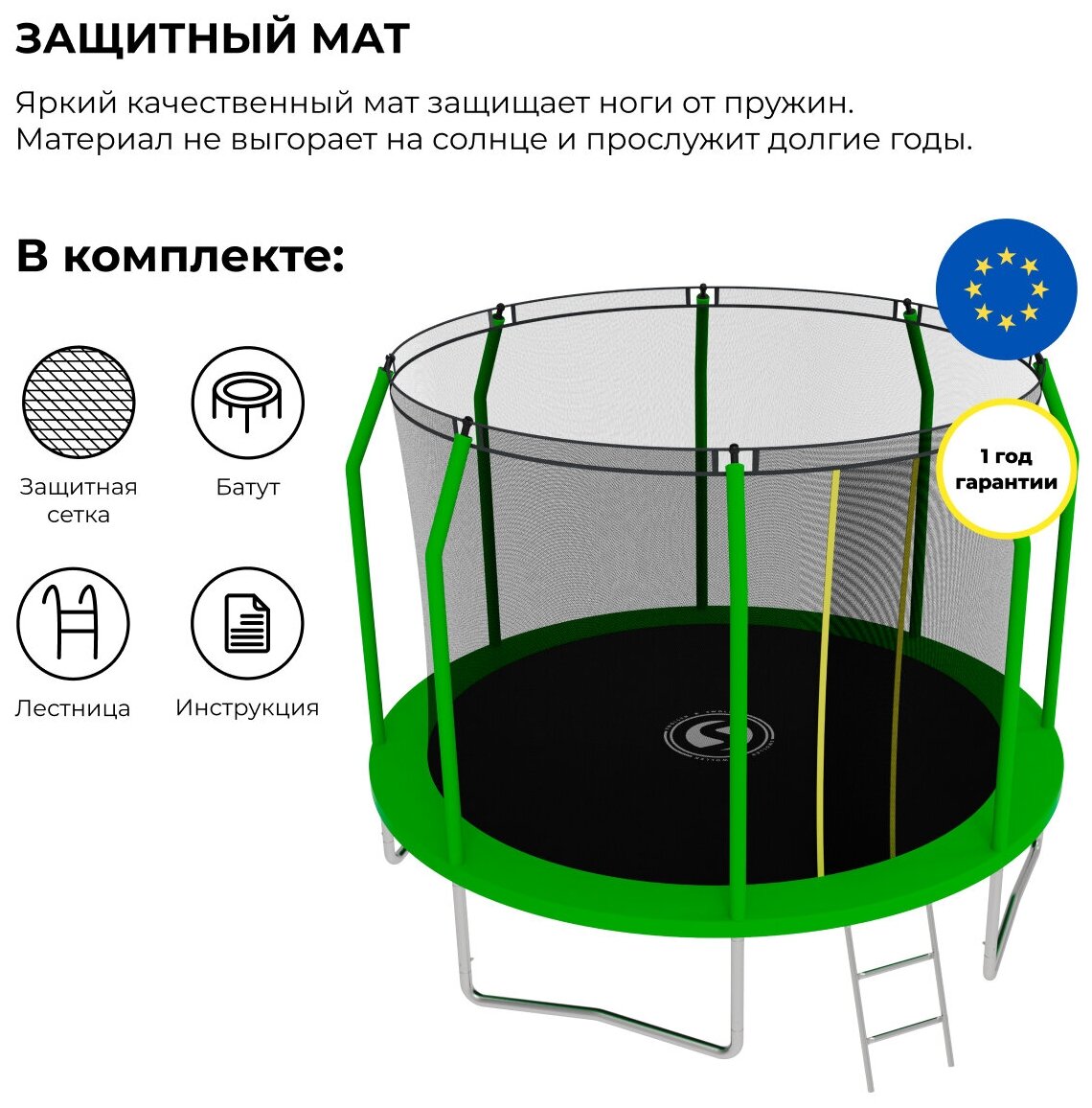 Батут с защитной сеткой SWOLLEN Comfort Overlap 10 FT (305 см) (Green) детский, для детей, уличный, для улицы, для дачи