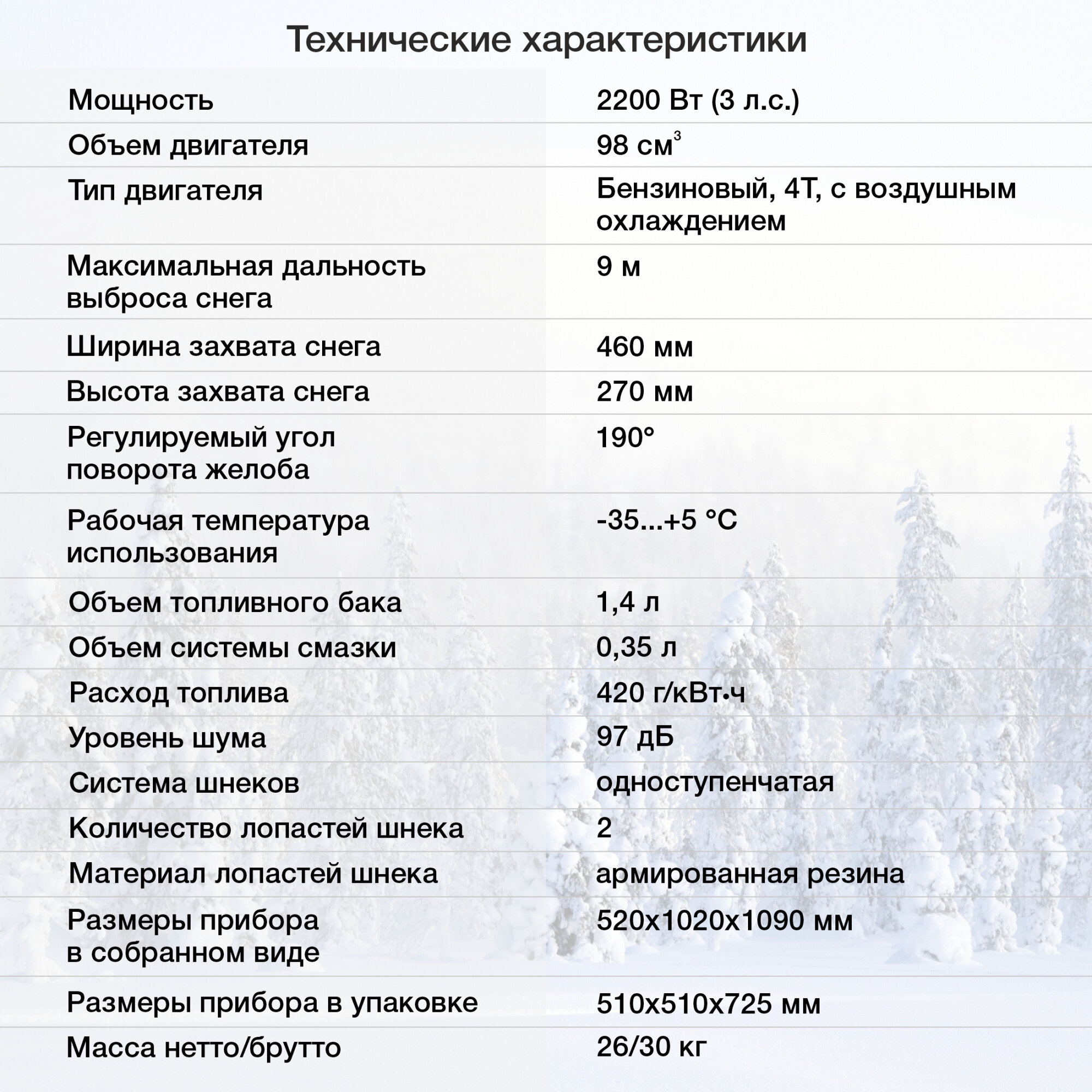 | Плюсы: | Легко заводиться, довольно мощный, далеко кидает даже сырой снег |