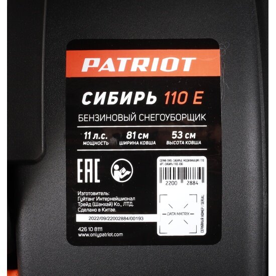Снегоуборщик Patriot Сибирь 110CЕ 426108111