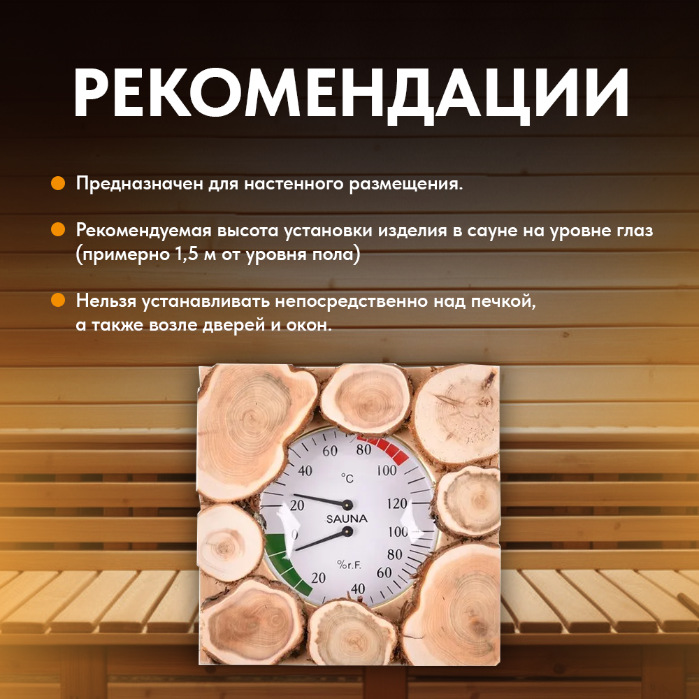 | Комплектация | Термометр для бани, гигрометр для бани |