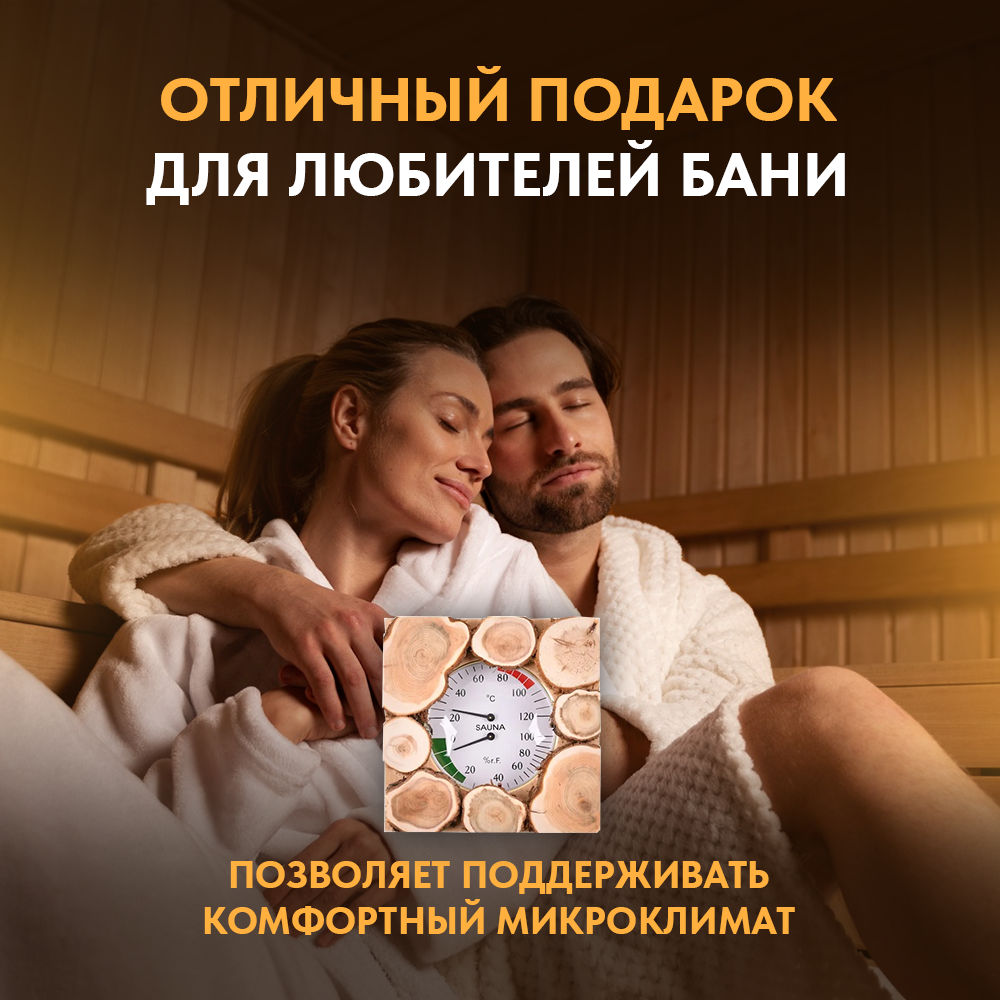 Термогигрометр для бани и сауны, контрастная древесина, от 0°С до +120°С