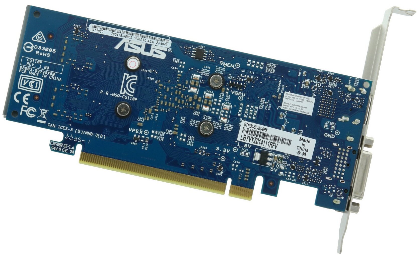 Видеокарта PCI-E ASUS GeForce GT 1030 (GT1030-SL-2G-BRK) 2GB Silent Low Profile GDDR5 64bit 14nm 1228/6008MHz DVI-D(HDCP)/HDMI RTL