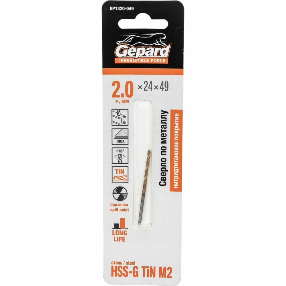 Сверло по металлу ц/х 2.0х24х49 мм HSS TIN GEPARD (нитридтитановое покрытие) (GP1320-049)
