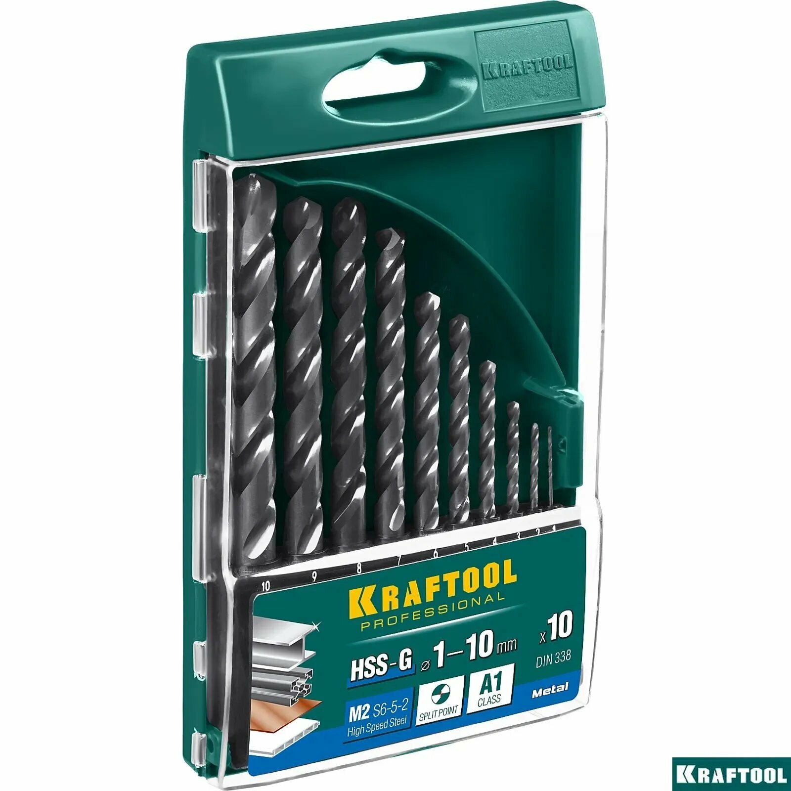 Купить KRAFTOOL HSS-G 10шт(1-10мм), Набор сверл по металлу HSS-G, сталь М2(S6-5-2), 29656-H10 (29651-H10)