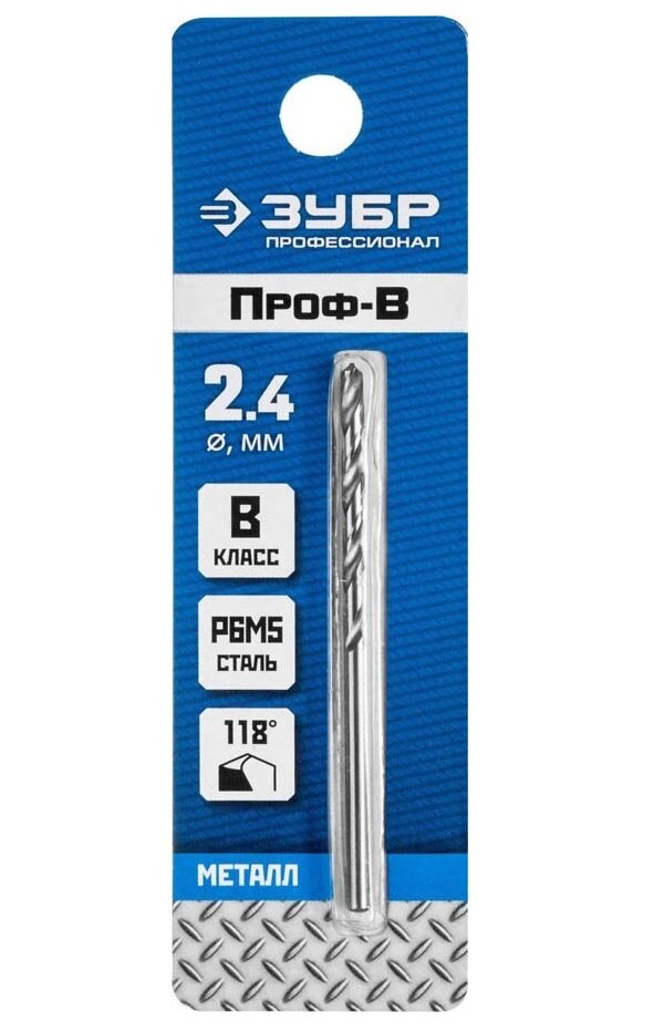 ЗУБР ПРОФ-в 2.4х57мм, Сверло по металлу, сталь Р6М5, класс В, , Серия Профессионал (29621-2.4) интересное: