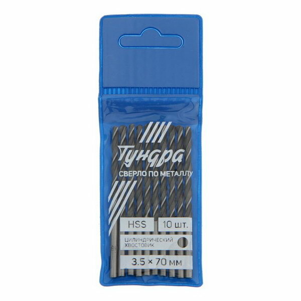 Сверло по металлу HSS, цилиндрический хвостовик, 3.5 x 70 мм, 10 шт. интересное: