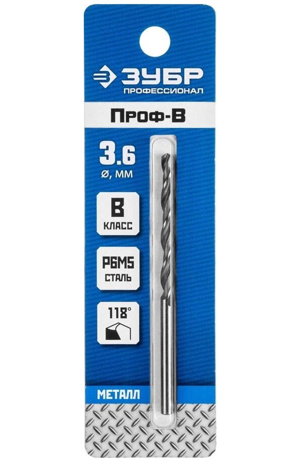 ЗУБР ПРОФ-в 3.6х70мм, Сверло по металлу, сталь Р6М5, класс В, , Серия Профессионал (29621-3.6) интересное: