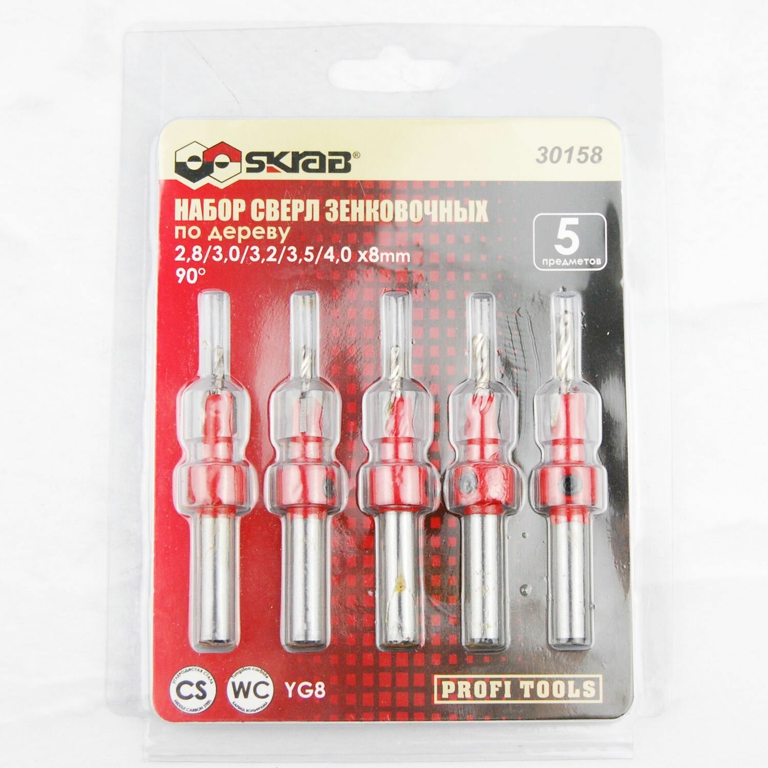 Набор зенковочных сверл по дереву 2.8/3.0/3.2/3.5/4.0/ х 8 мм 90 гр. 5пр. SKRAB 30158
