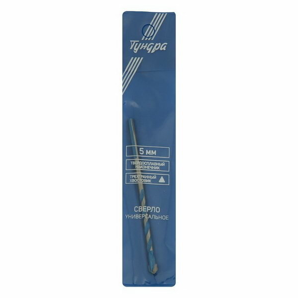 Сверло универсальное тундра, твердосплавный наконечник, трехгранный хвостовик, 5 х 100 мм