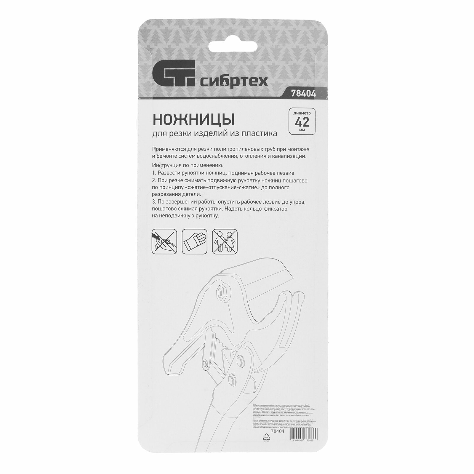 Ножницы для пластиковых труб Сибртех 42 мм 78404