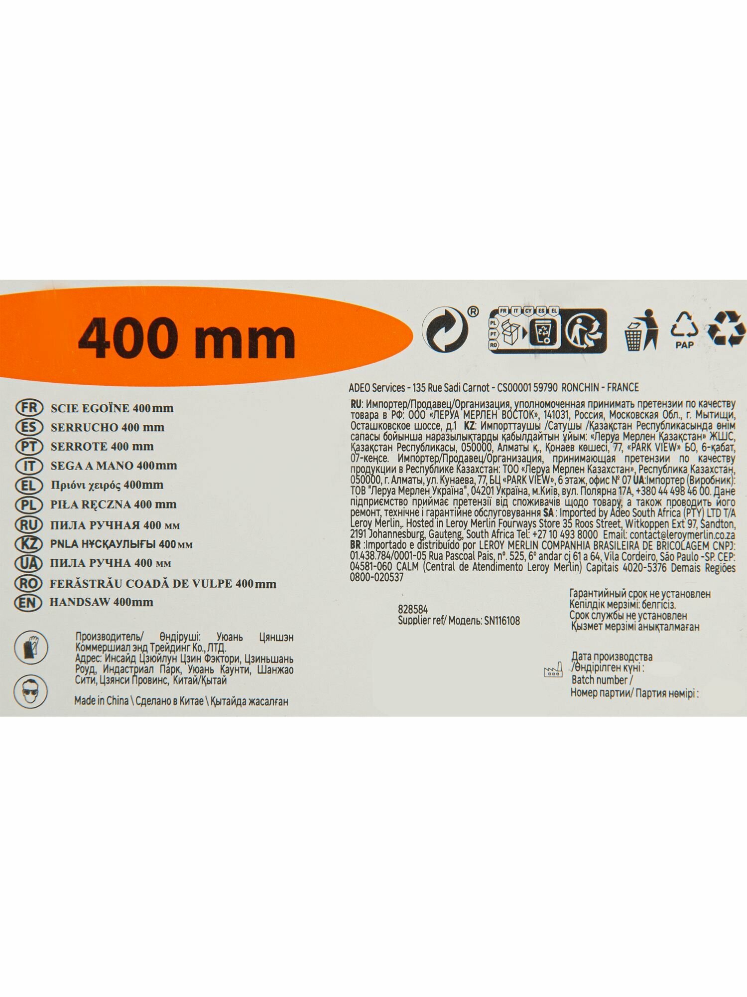 Ниже Вы можете прочитать отзывы на Пила по дереву средний зуб, 400 мм, ознакомится с подробными характеристиками, посмотреть интересные обзоры и фотографии на Пила по дереву средний зуб, 400 мм.
