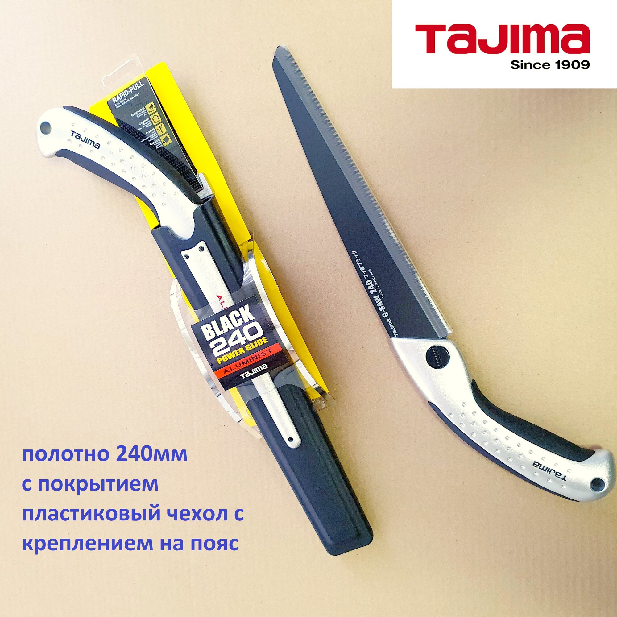 Ручная пила TAJIMA ALUMINIST ALSA240 с черным полотном 240мм, в поясном чехле интересное: