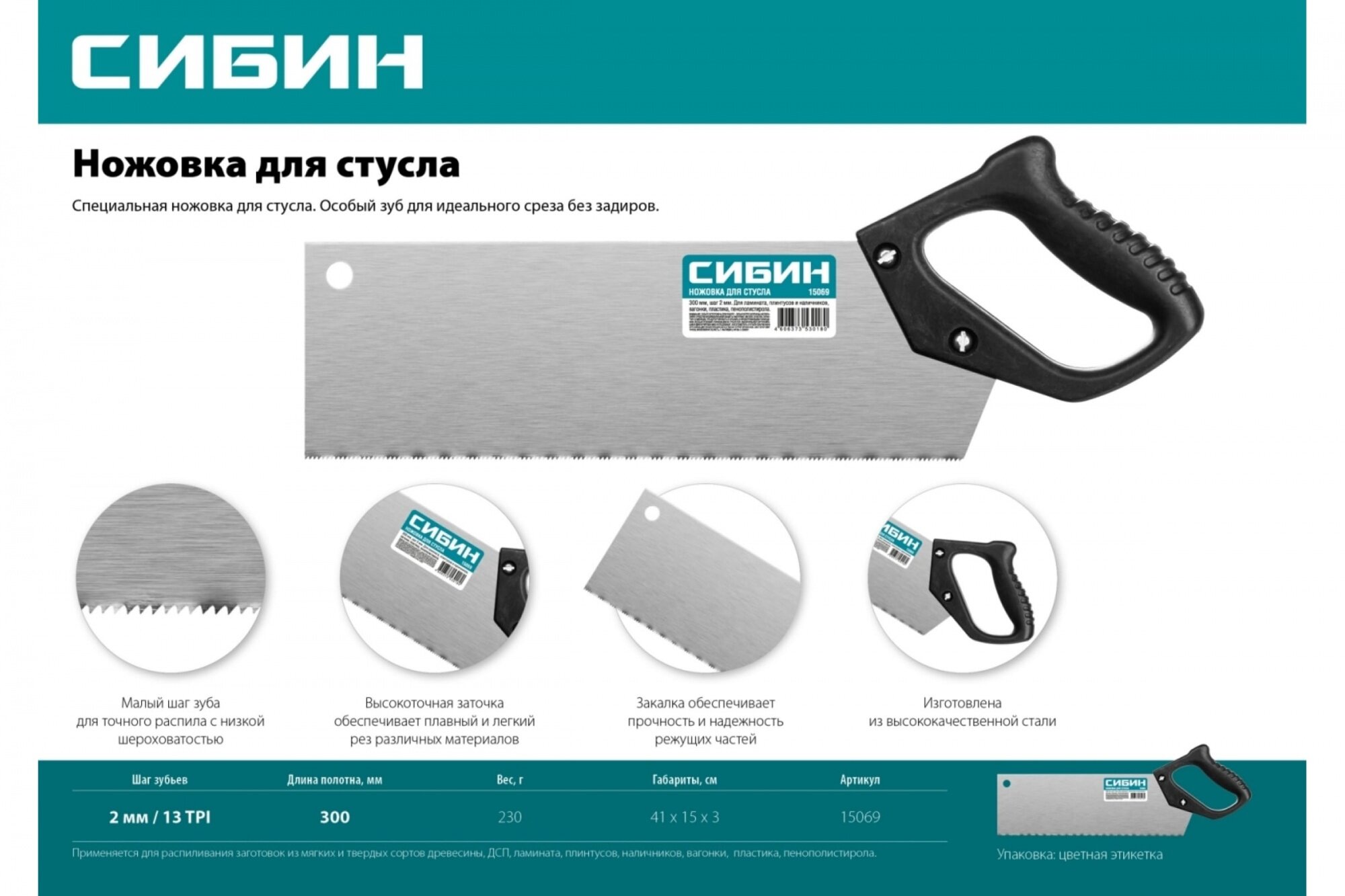 Ножовка для стусла (пила) СИБИН, 300мм, рукоятка Пластик, полотно Сталь, шаг зуба 13 TPI интересное: