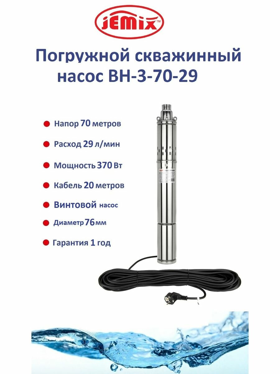 Поверхностный насос скважинный насос JEMIX ВН-3-70-29 винтовой (370 Вт) серебристый