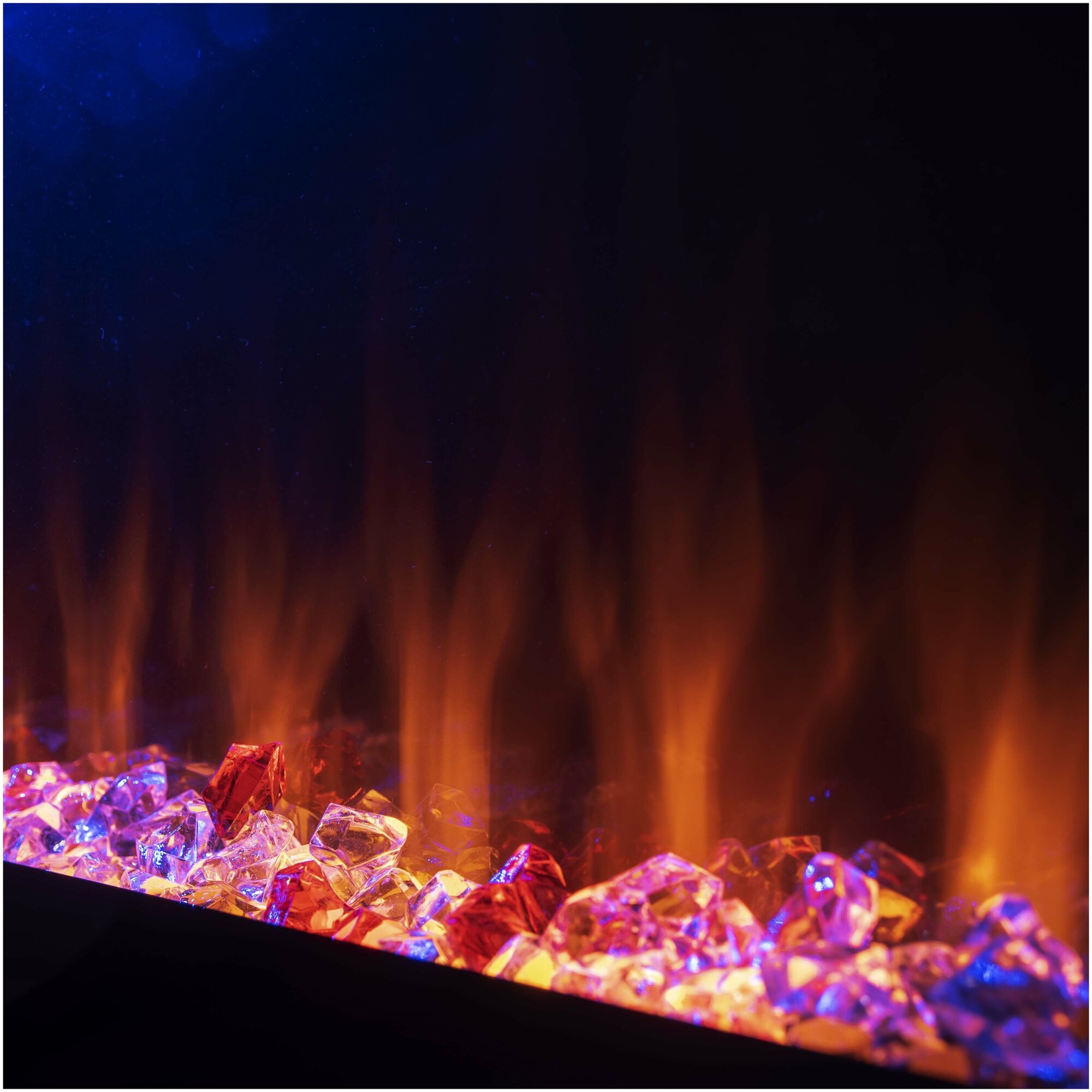 везде. Кристаллы и дрова идут в отдельных пакетах и можно их разложить при монтаже камина по своему вкусу. Кристаллов 85% - прозрачных, есть еще красные и черные понемногу штук, если кому то захочется и таких положить. |