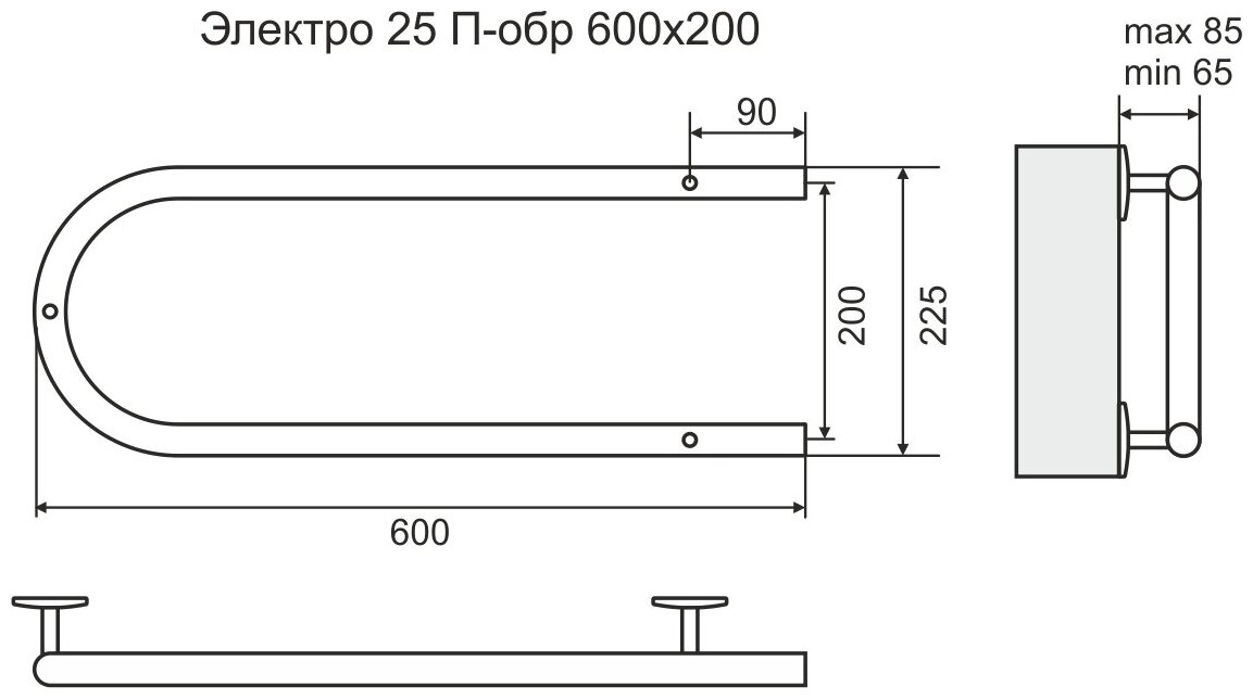 Полотенцесушитель электрика Terminus Электро 25 П-обр 600х200