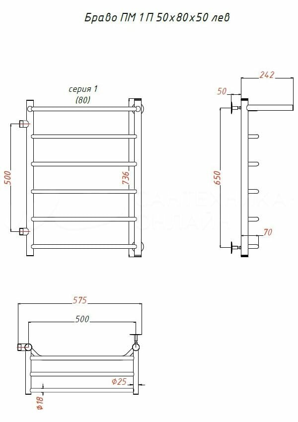 Полотенцесушитель Браво ПМ 1 П 50*80*50 лев