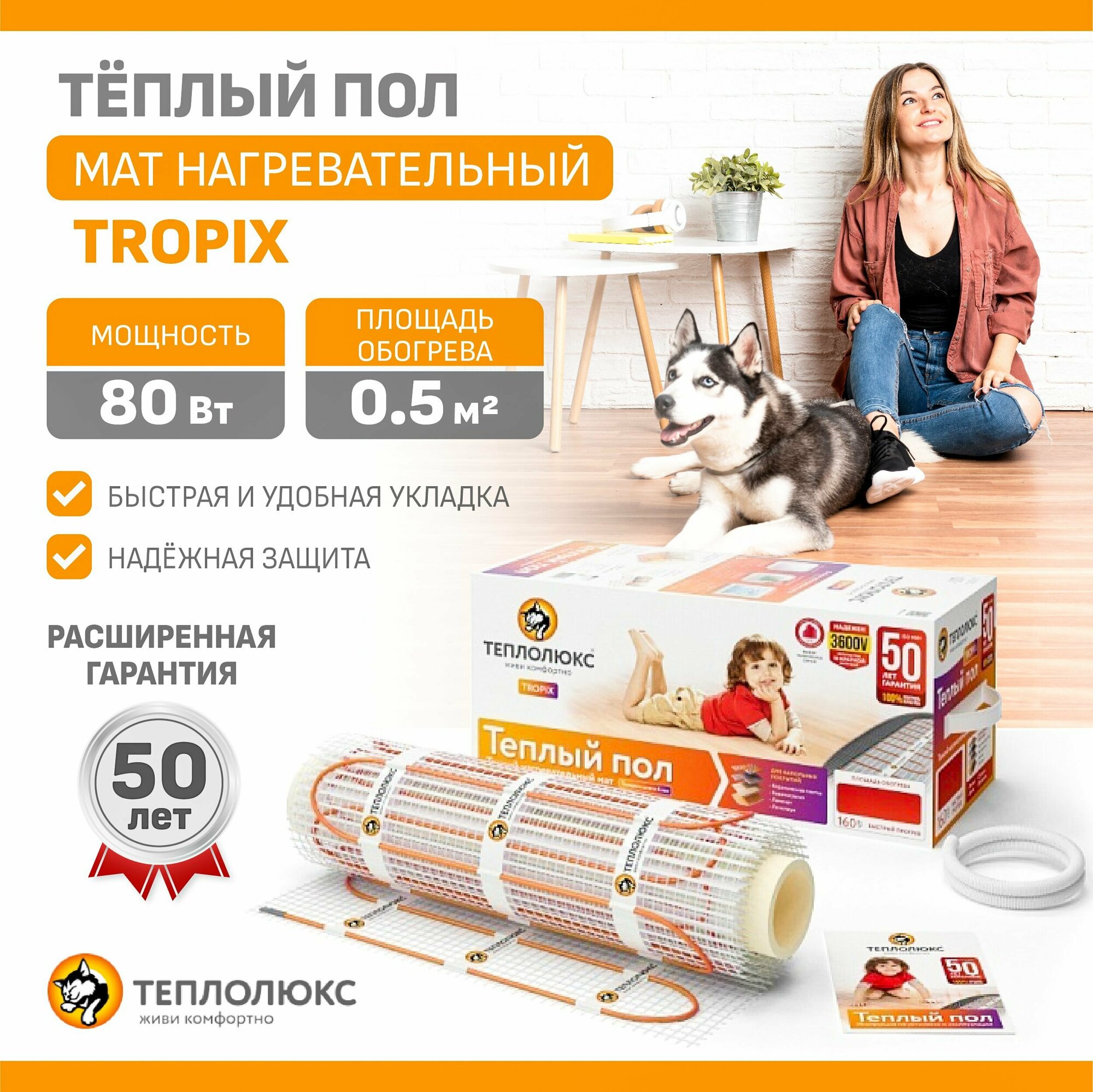 Теплолюкс Тропик мат нагревательный 80 Вт/0,5 кв.м / TEPLOLUXE Tropix теплый пол мат нагревательный 80 Вт/0,5 кв.м