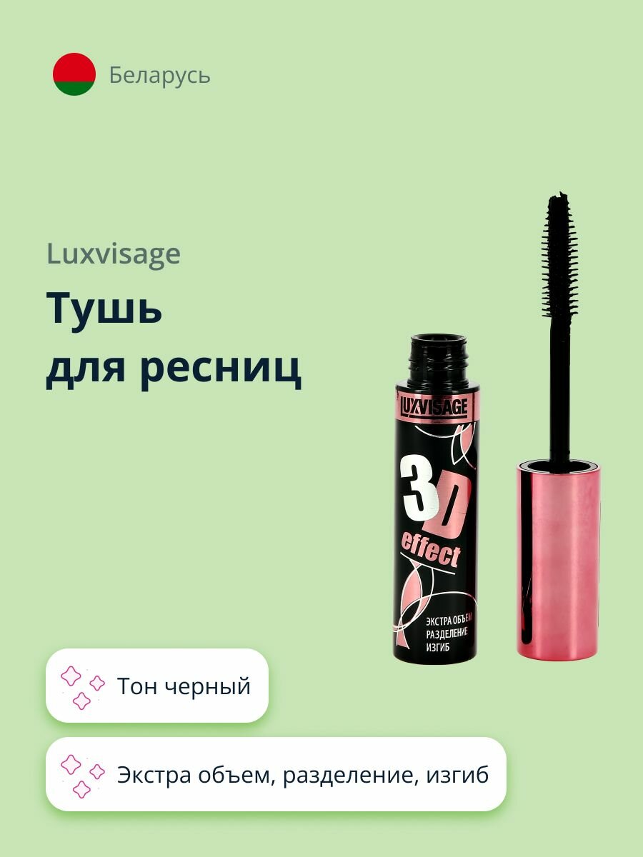 Тушь для ресниц Luxvisage 3D effect Экстра, Объем, Разделение, Изгиб, цвет черный,10 гр.