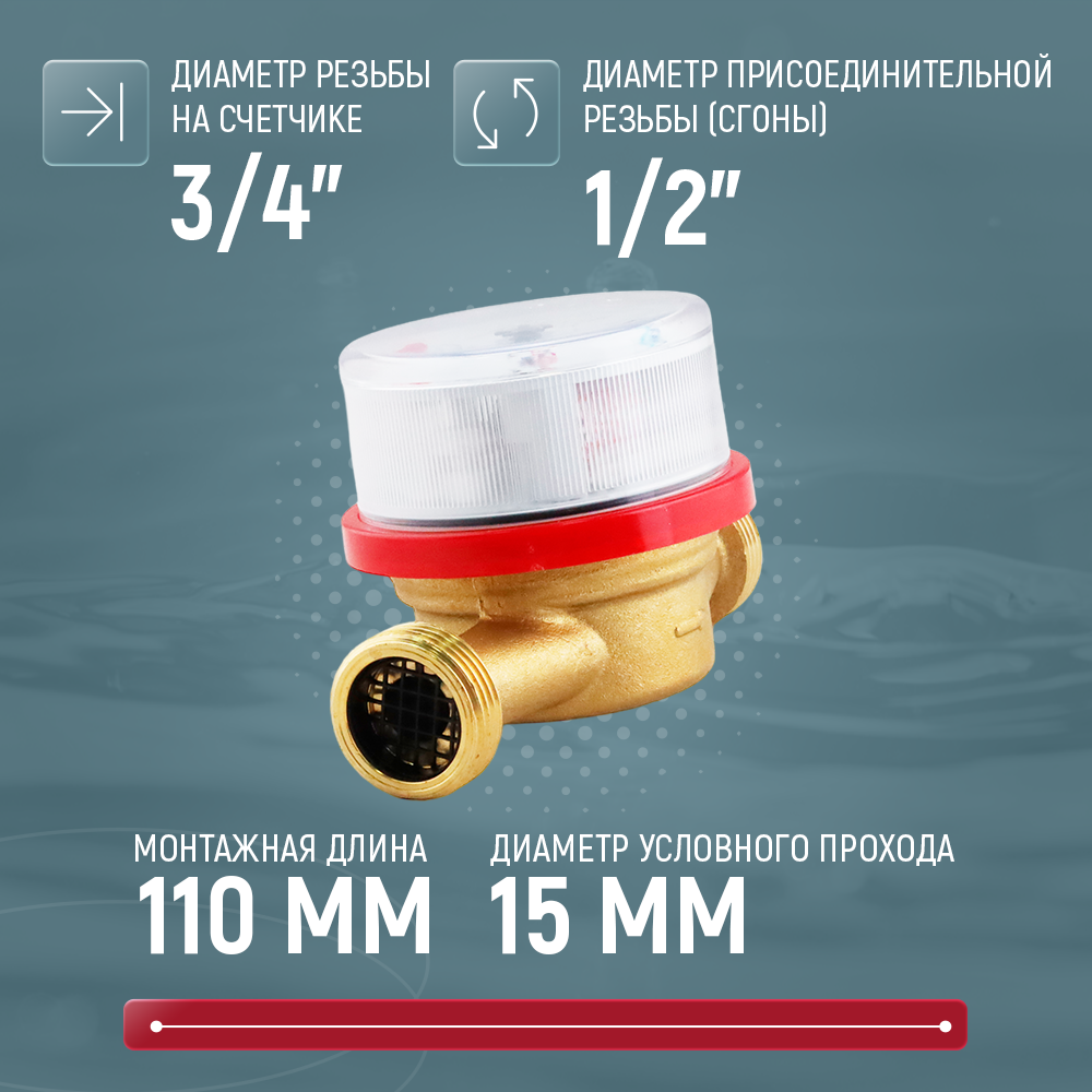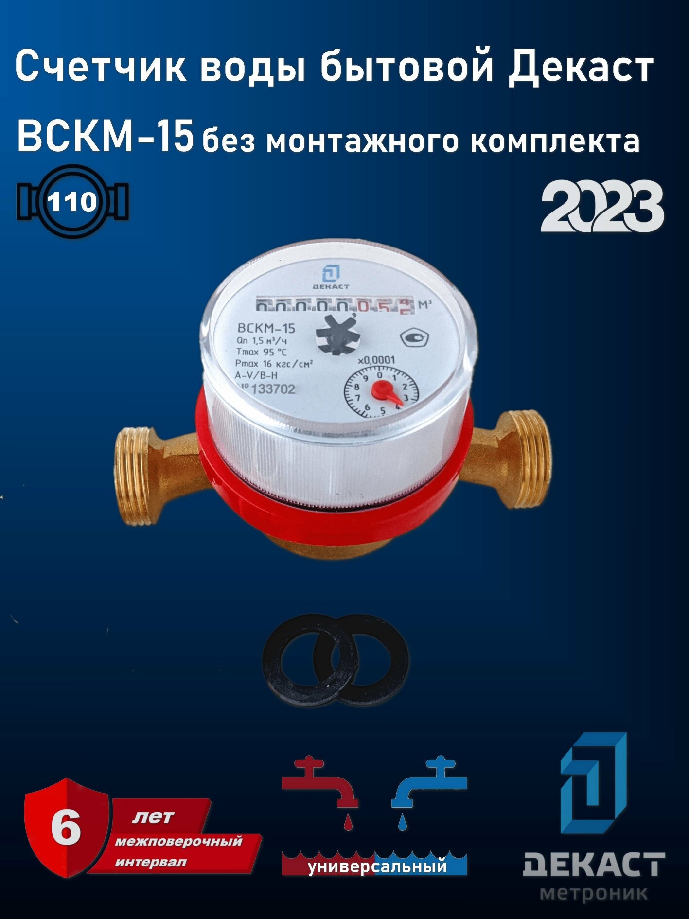 Универсальный счётчик Декаст ВСКМ-15 (110 мм, без кмч), L110, Ду15