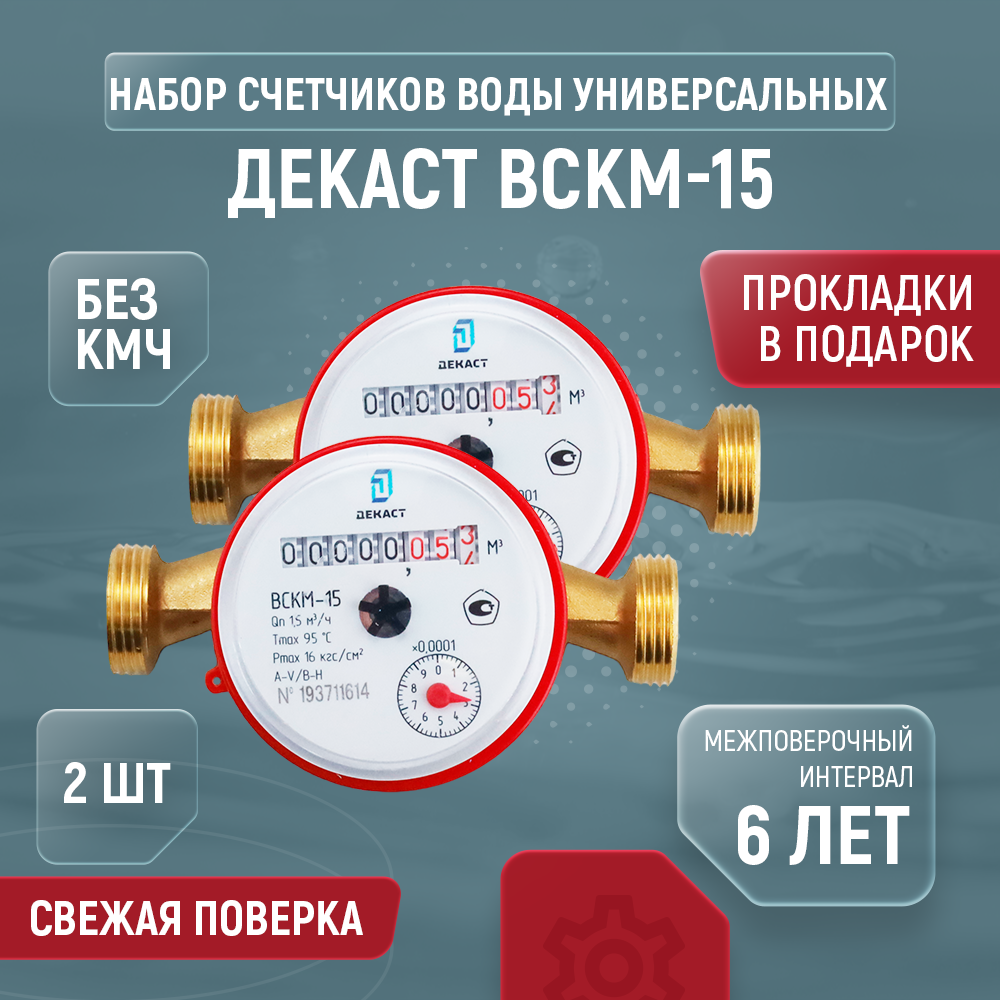 Счетчик воды Декаст ВСКМ-15 (110 мм, без кмч) (2 шт.)