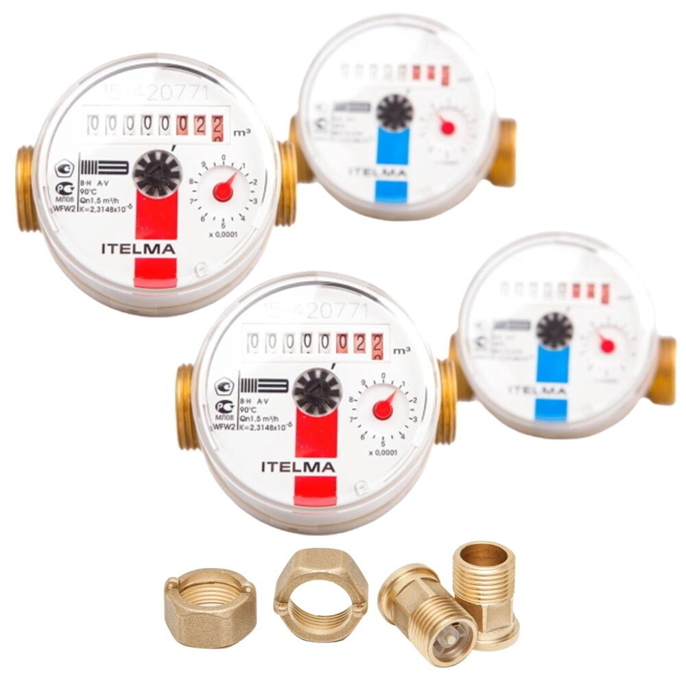 Купить Комплект счетчиков холодной и горячей воды Itelma WFK20.D080 и WFW20.D080+КМЧ с обратным клапаном, L-80 Ду-15 1/2" - 2 шт.