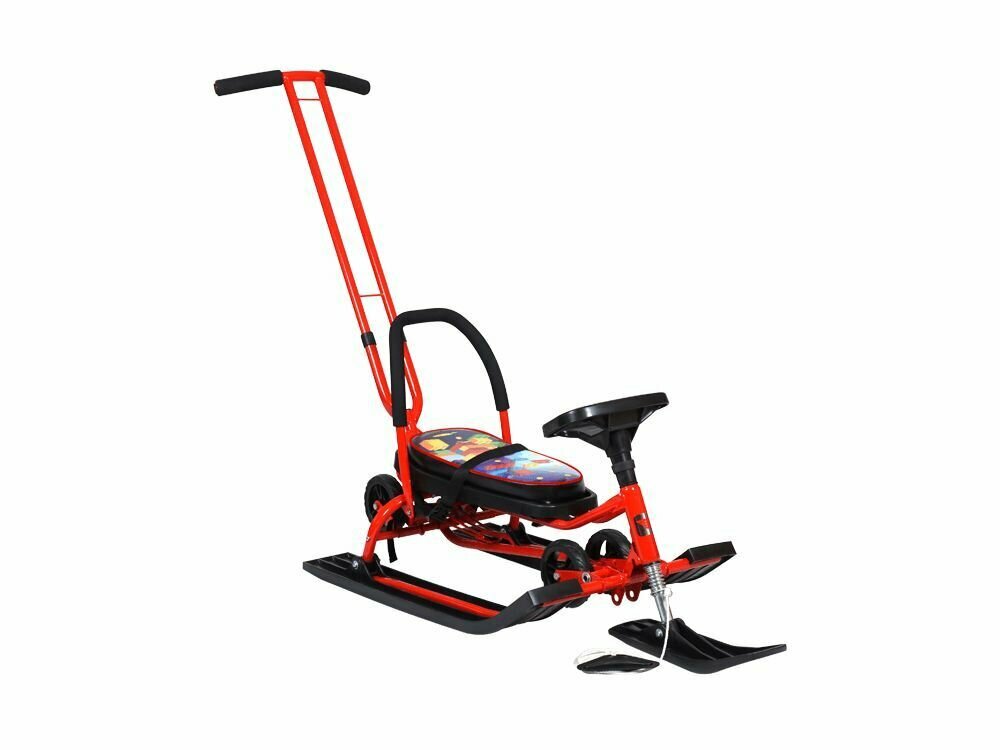 Снегокат Барс 111 Mobile с Т-образным толкателем и колесной базой Sweet Winter красный