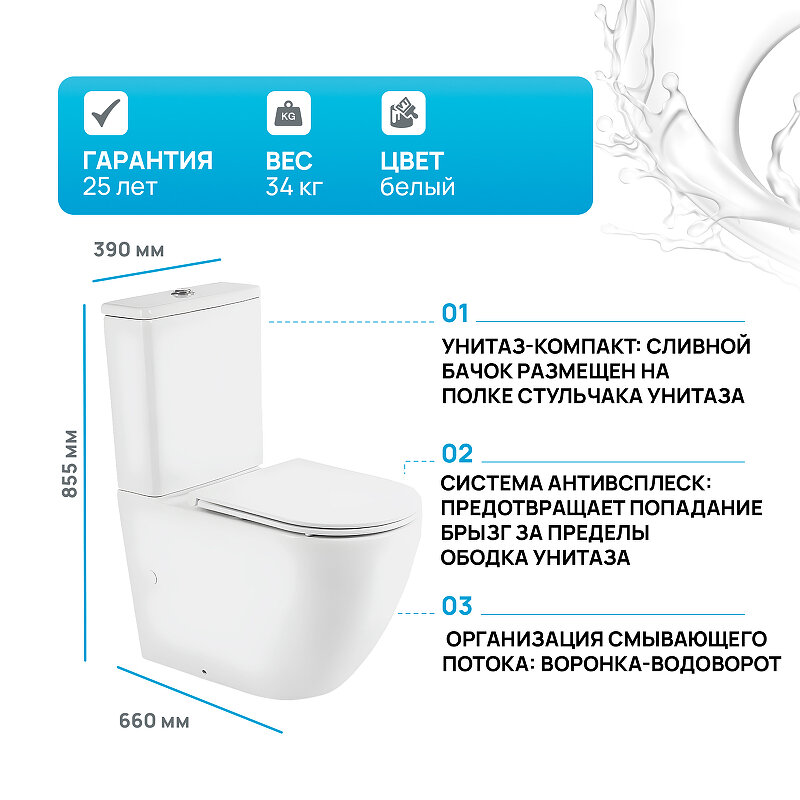 Унитаз компакт Vincea Evo VT2B-34 без бачка с сиденьем Микролифт