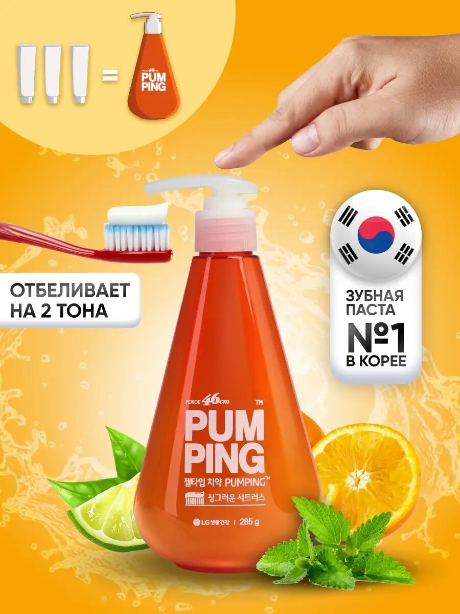 Отбеливающая зубная паста с цитрусами Perioe Pumping LG Whitening Toothpaste 285мл