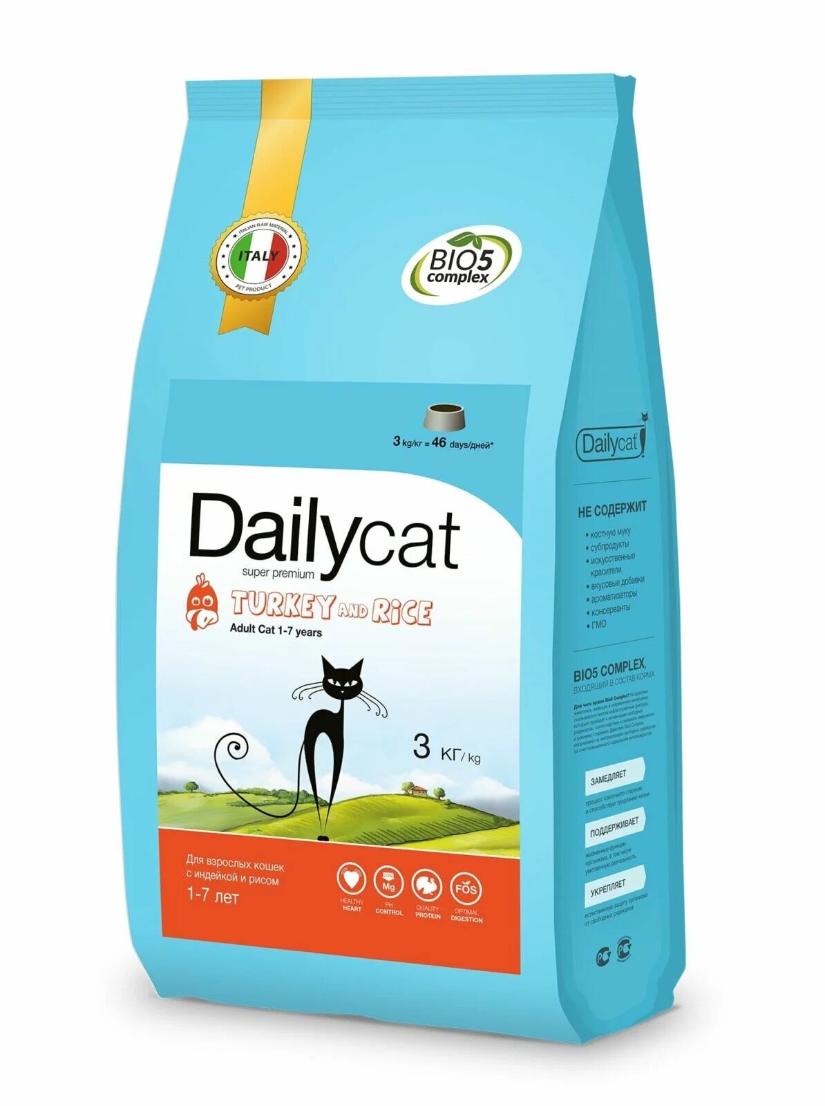 DAILYCAT ADULT TURKEY & RICE монобелковый для взрослых кошек с индейкой и рисом (3 кг)