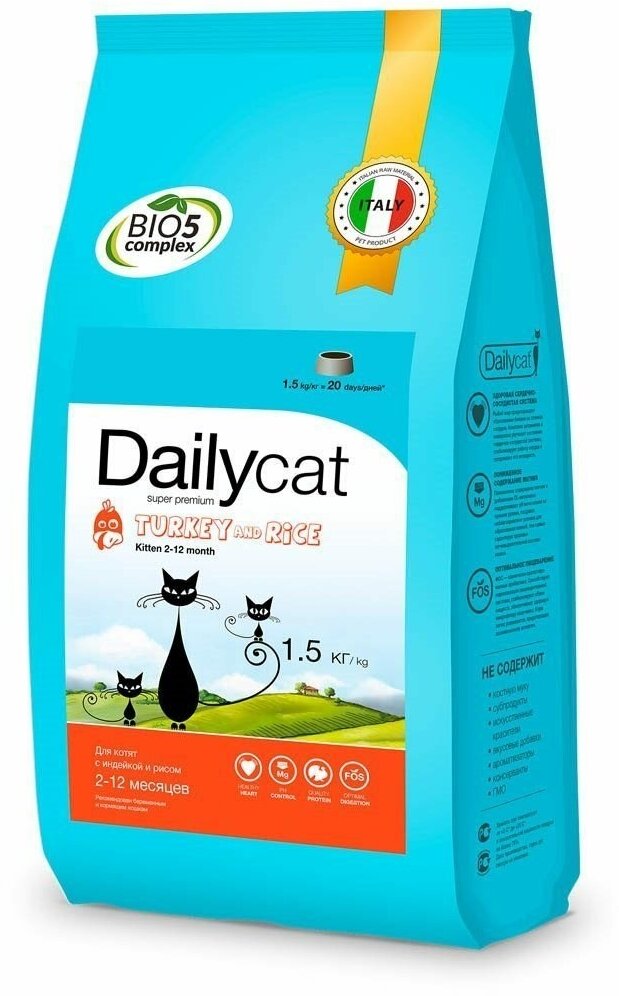DailyCat Kitten Turkey - Сухой корм для котят с индейкой (1,5 кг)