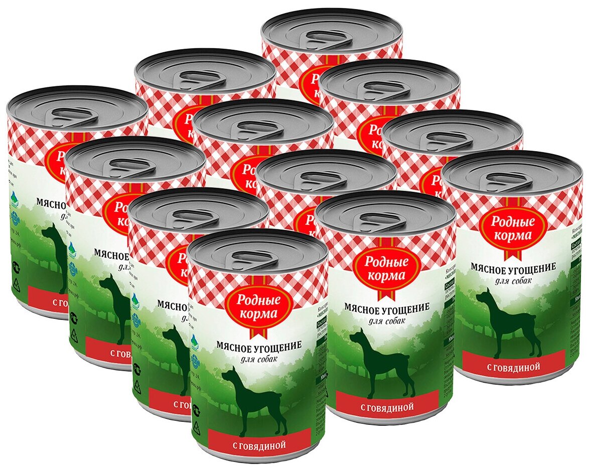 Родные корма Мясное угощение с Говядиной консервы для собак 340 г х 12 шт