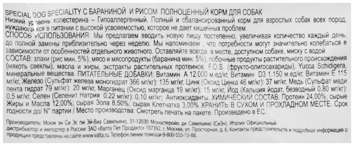 Сухой корм SPECIAL DOG для собак, С ягненком И рисом 15 КГ 7658 .