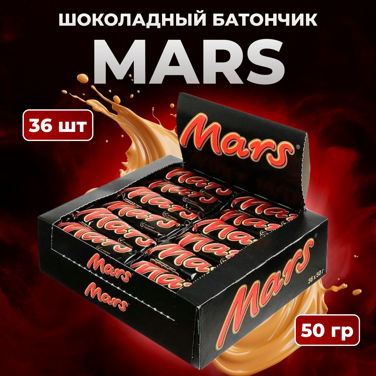 Купить Батончик Mars с карамелью и нугой, 50 г, 36 шт.