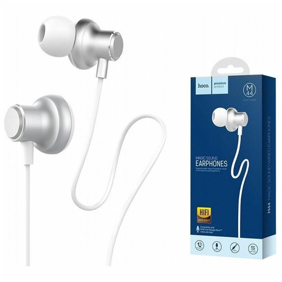 Гарнитура HOCO M44 Magic Sound 3.5мм, внутриканальная, громкость +/-, 1.2м (серебристый)