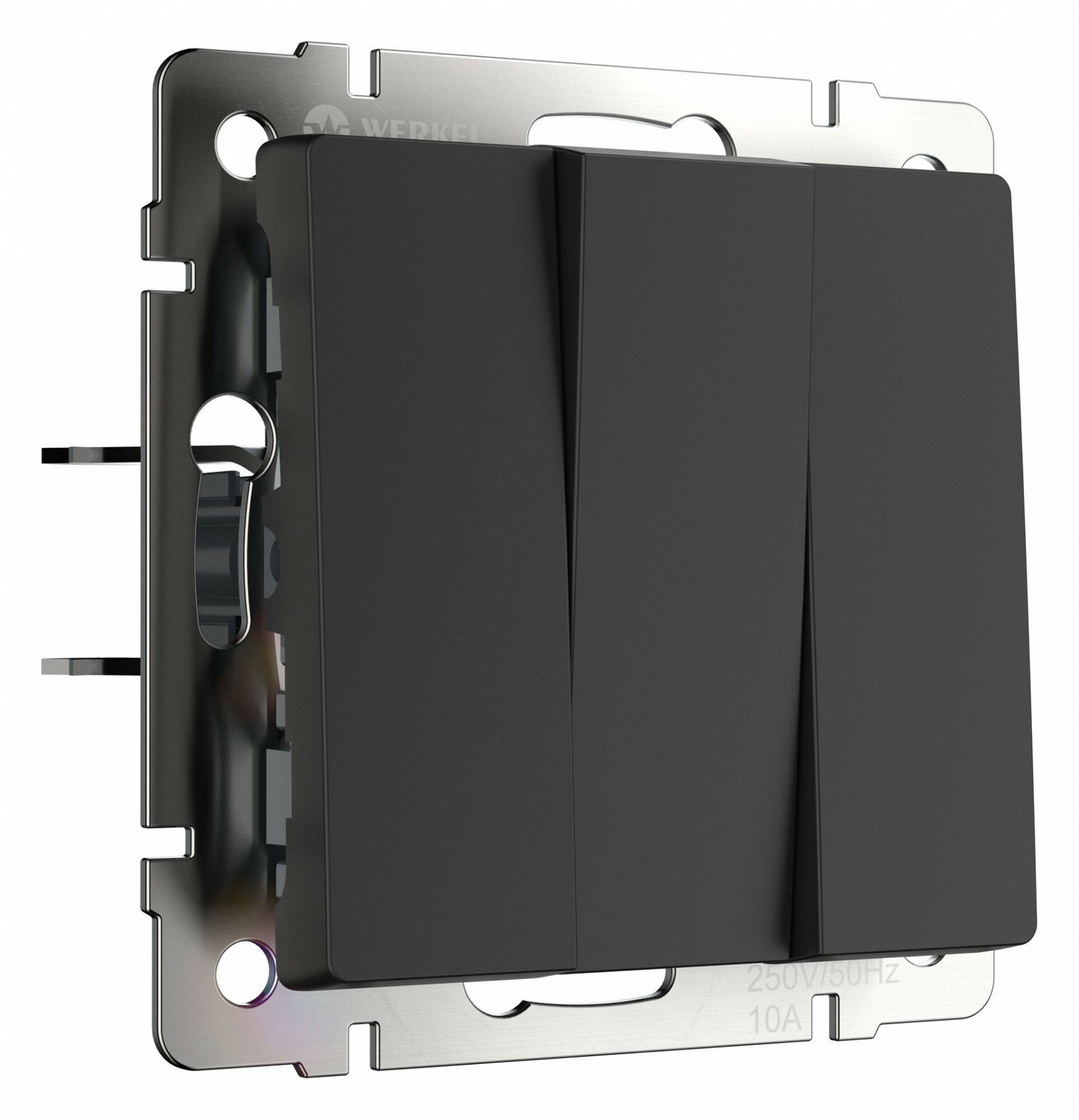 Типы/Электротовары/Выключатели Werkel Выключатель трехклавишный Werkel черный матовый W1130008 4690389156755