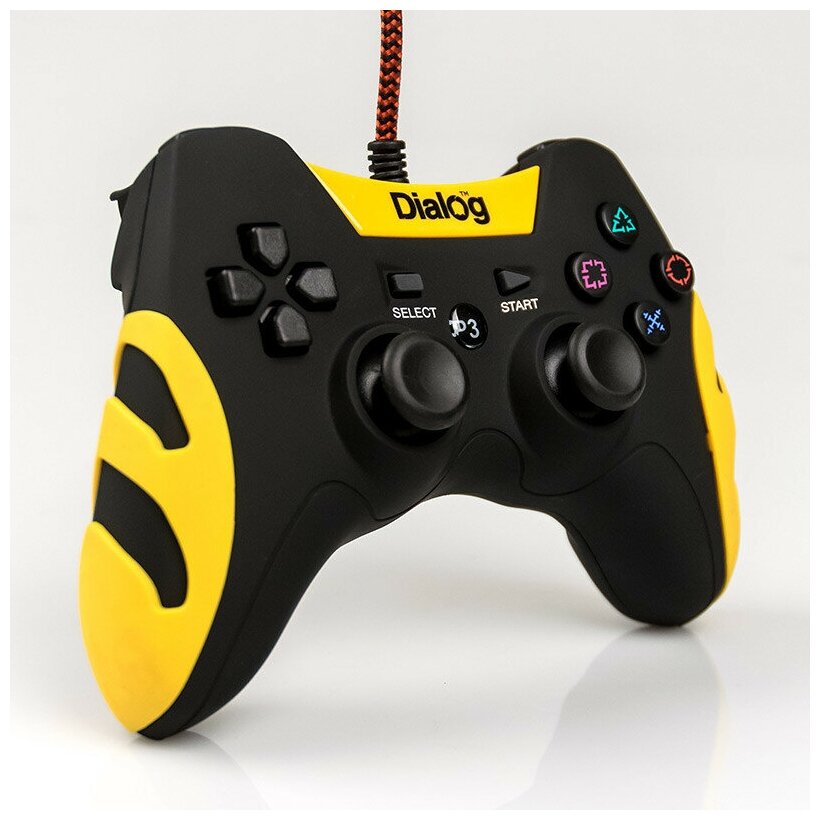 Геймпад Dialog GP-A21, вибрация, 12 кнопок, чёрно-жёлтый, прорезиненный - usb, PS3