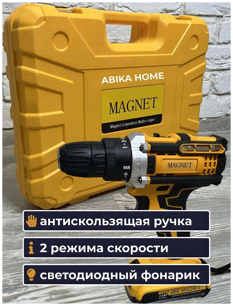Шуруповёрт MAGNET ,От аккумулятора,18-24 В, 2 АКБ / шуруповёрт полупрофессиональный в кейсе / лучший подарок мужчине