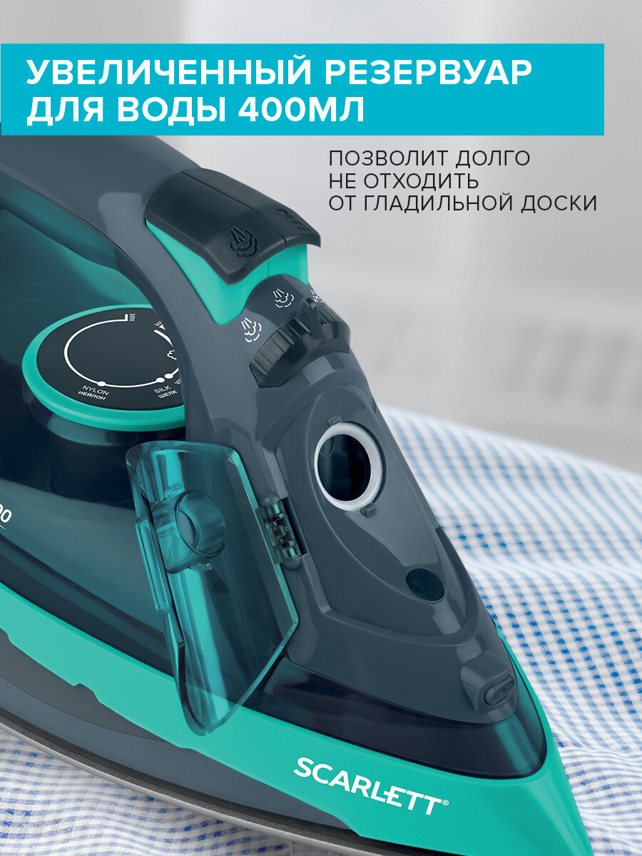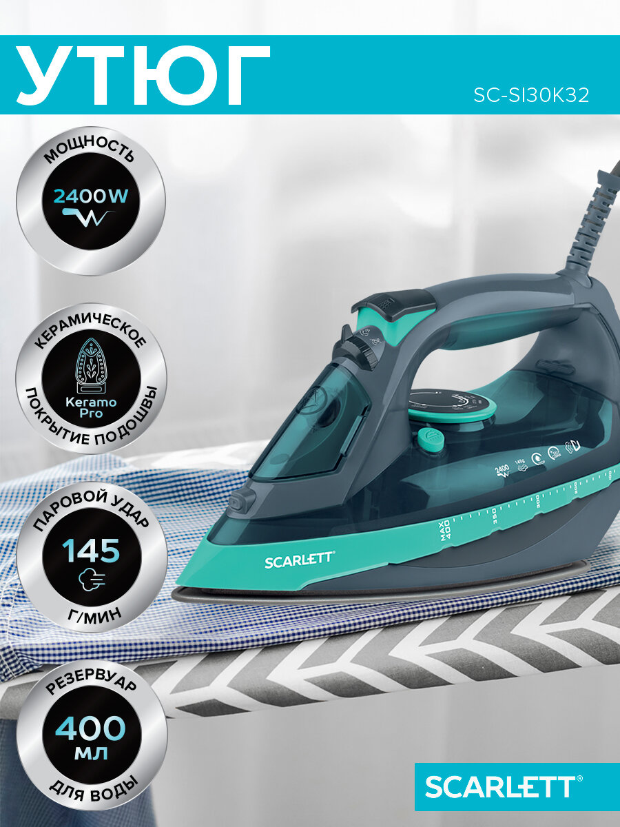 Утюг Scarlett SC-SI30K32 с керамическим покрытием подошвы, резервуар для воды 400 мл