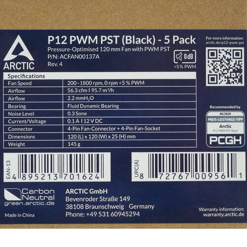 Вентилятор для корпуса Arctic P12 PWM PST Value pack (black/black) (5pc) Acfan00137a .