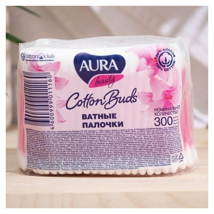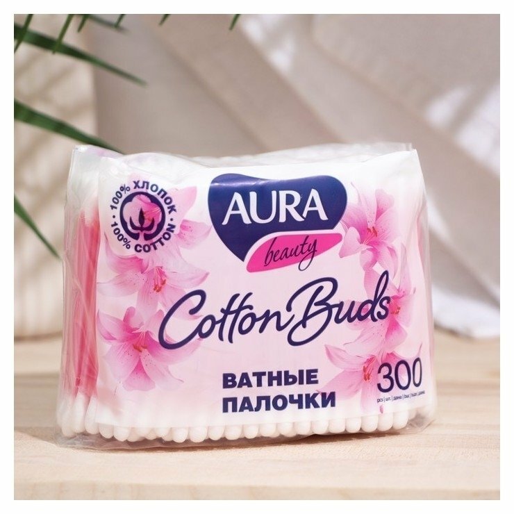 Ватные палочки Aura "Beauty" 300 шт, полиэтиленовый пакет