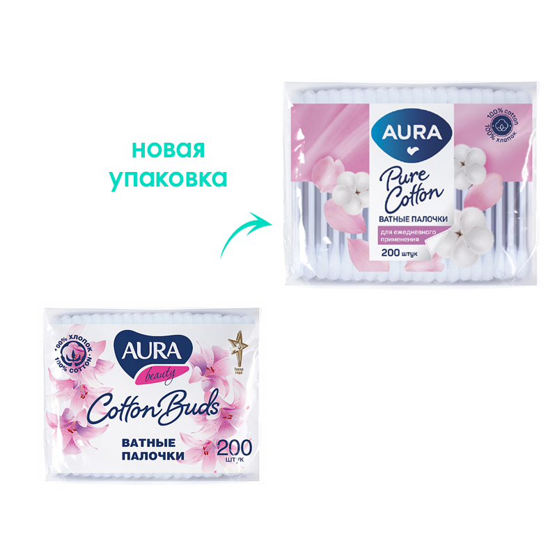 AURA Ватные палочки Aura Beauty Cotton Buds, 100 шт.