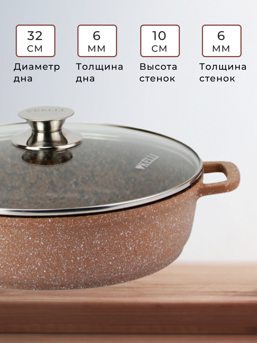 Сковорода-сотейник KELLI KL-4019-32 32 см, 7,0 л, коричневый