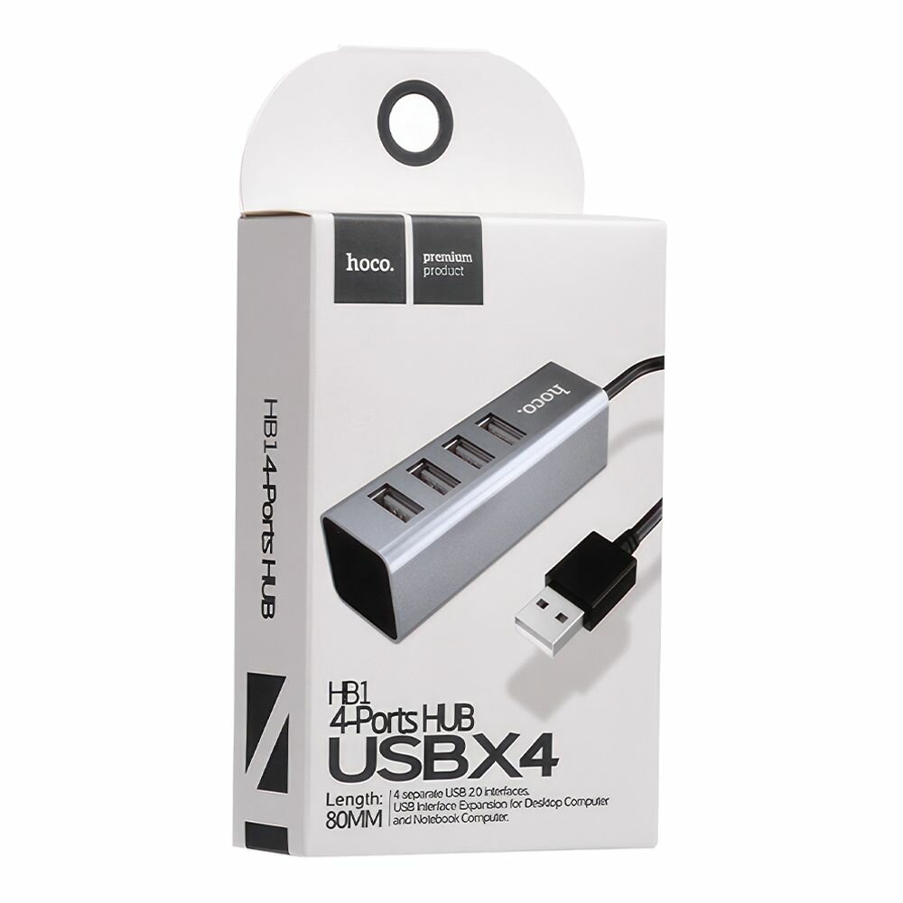 HUB разветвитель HOCO HB1, USB to 4USB 2.0, (USB 2:0 - 480 Мбит/с), 0.8m, серый