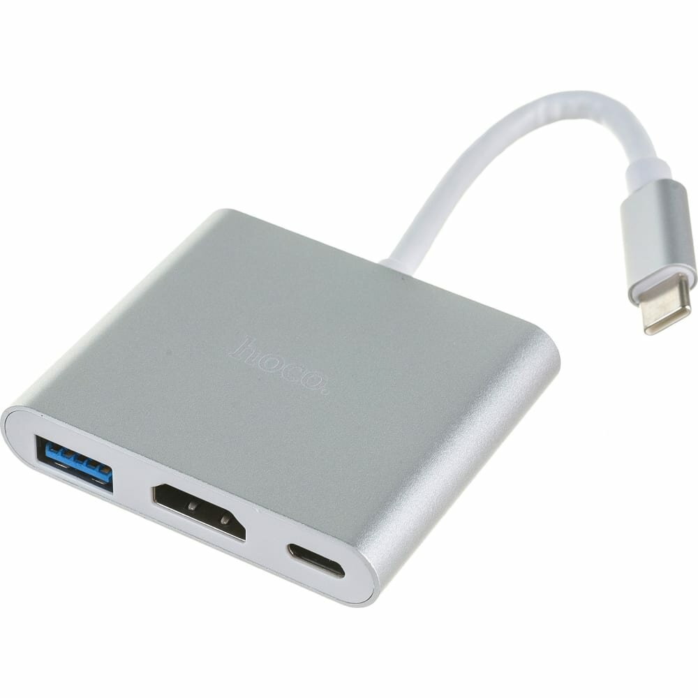 Хаб Hoco Type-C HB14 Easy use USB-C на USB3.0 + HDMI + PD, серебряный