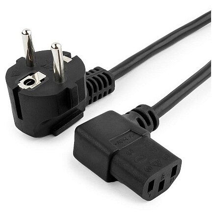 Кабель Cablexpert питания 1.8м, Schuko- C13, VDE, 10А, Сечение провода: 0,75 мм2, черный, угловой разъем, с заземлением