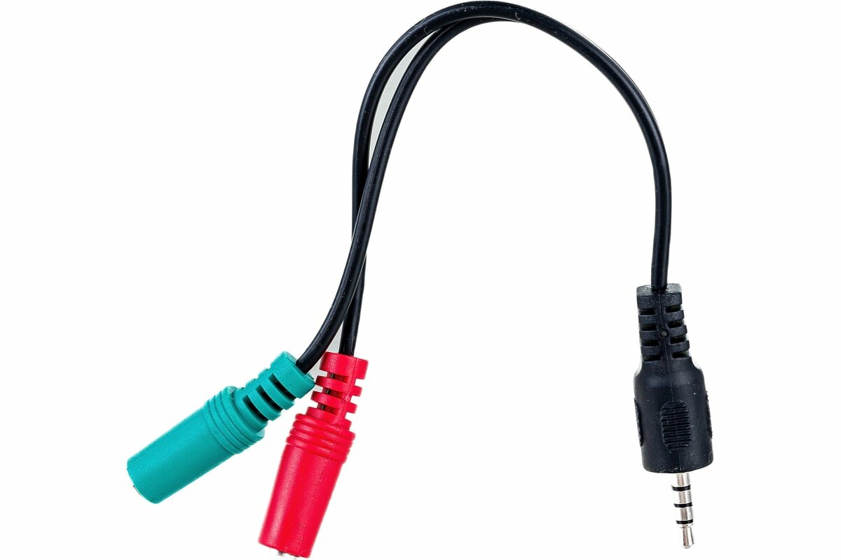 Переходник jack 3.5 мм (4pole) (m) - jack 3.5 мм(стерео)(f) + jack 3.5 мм(моно)(f) микрофон, 20см, черный