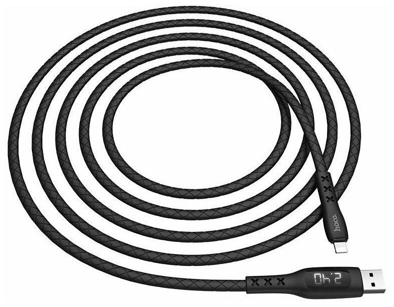 Кабель USB - Type-C HOCO S6 Sentinel, 1.2м, круглый, 2.4A, силикон, дисплей, цвет: чёрный интересное: