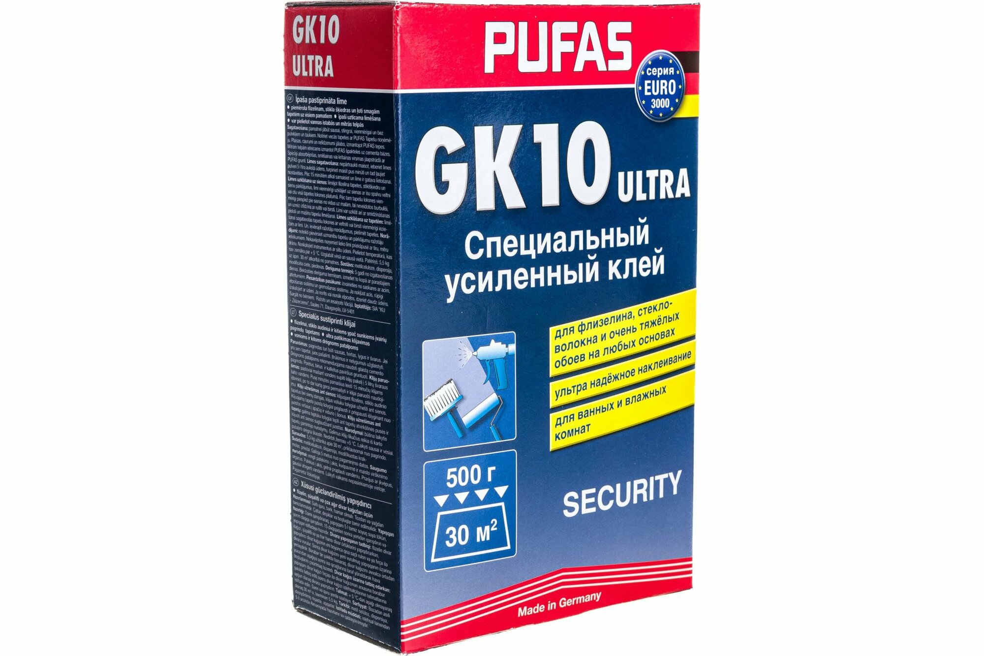 Клей для флизелиновых обоев PUFAS Security GK 10 для стекловолокна и флизелина 0.5 кг 1 шт.